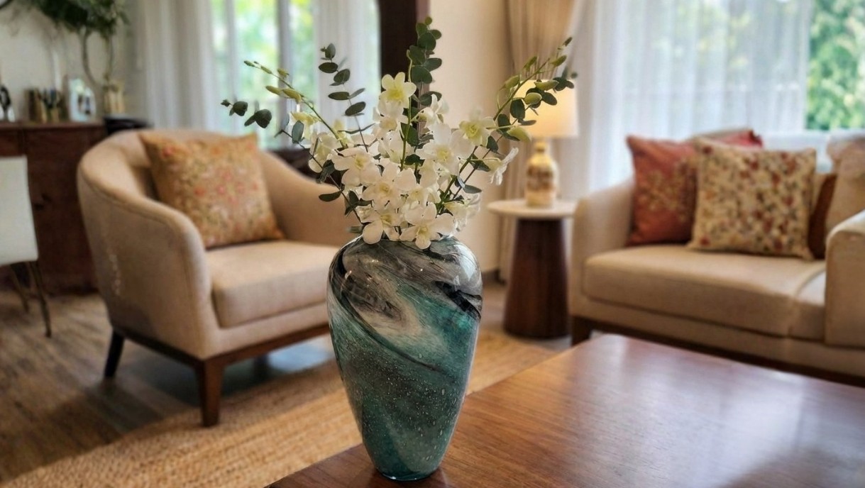 Bring coastal elegance into your home with the Beach Sand Glass Vase, featuring a unique ocean-inspired swirl design that beautifully complements fresh or artificial flowers. Perfect for modern and luxury interiors, this decorative glass vase adds a calming, seaside charm to living rooms, bedrooms, and office spaces.