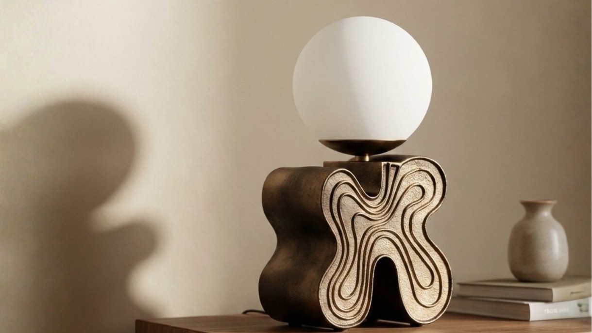 Eton Table Lamp features a sculptural base with flowing contours paired with a soft globe light, creating a warm and modern ambiance. Ideal for bedside tables, consoles, or living spaces, this designer lamp adds artistic elegance and contemporary charm to your home decor.