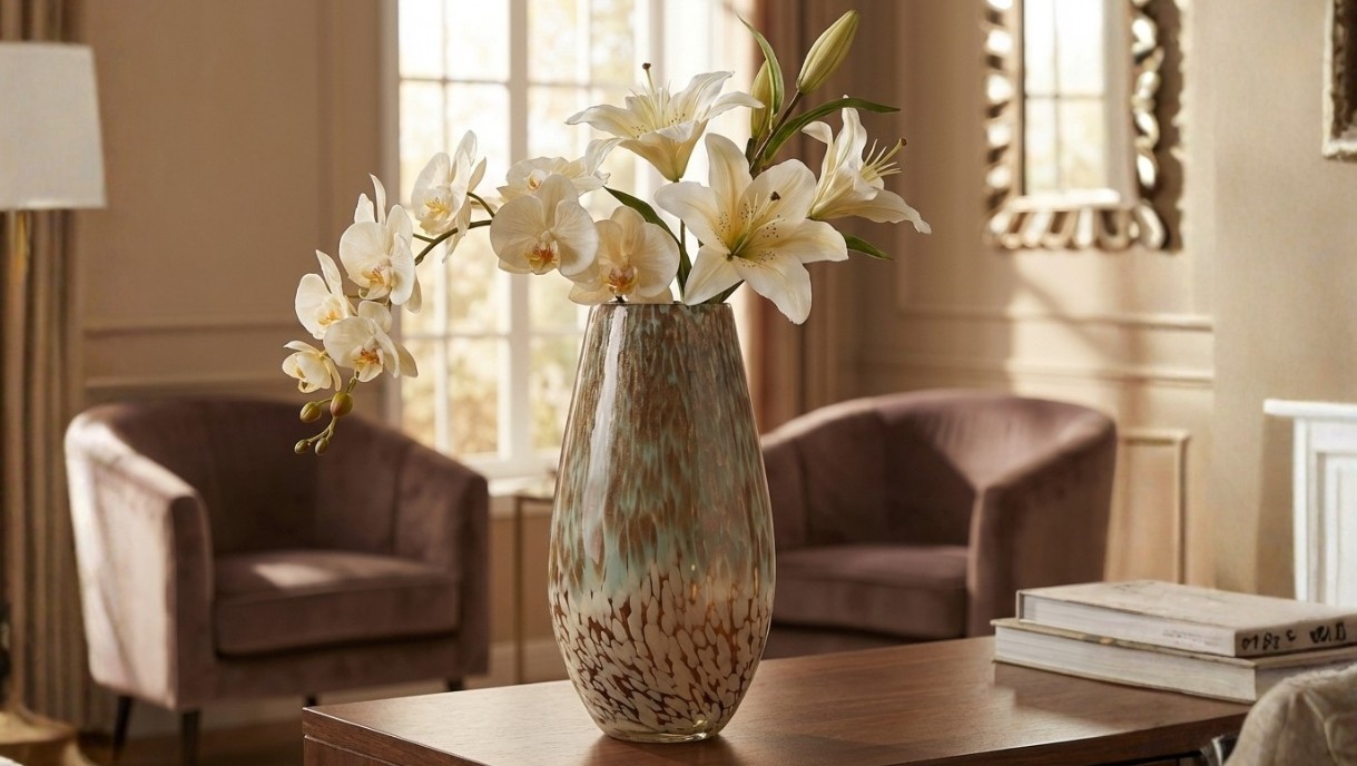 Enhance your home decor with this luxury decorative flower vase, featuring an elegant textured finish that beautifully complements fresh or artificial floral arrangements. Perfect for modern living rooms and premium interiors, this stylish vase adds a touch of sophistication and warmth to any space.