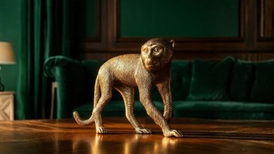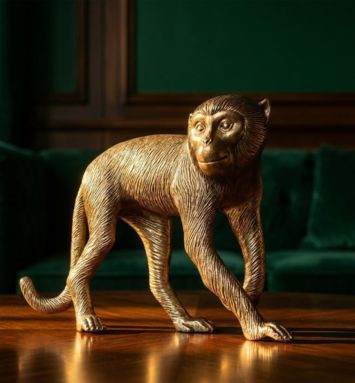 This sculptural monkey accent is finished in a rich antique gold tone, capturing movement and character through finely textured detailing. A bold yet playful statement piece, it adds curated luxury and artistic charm to contemporary interiors.