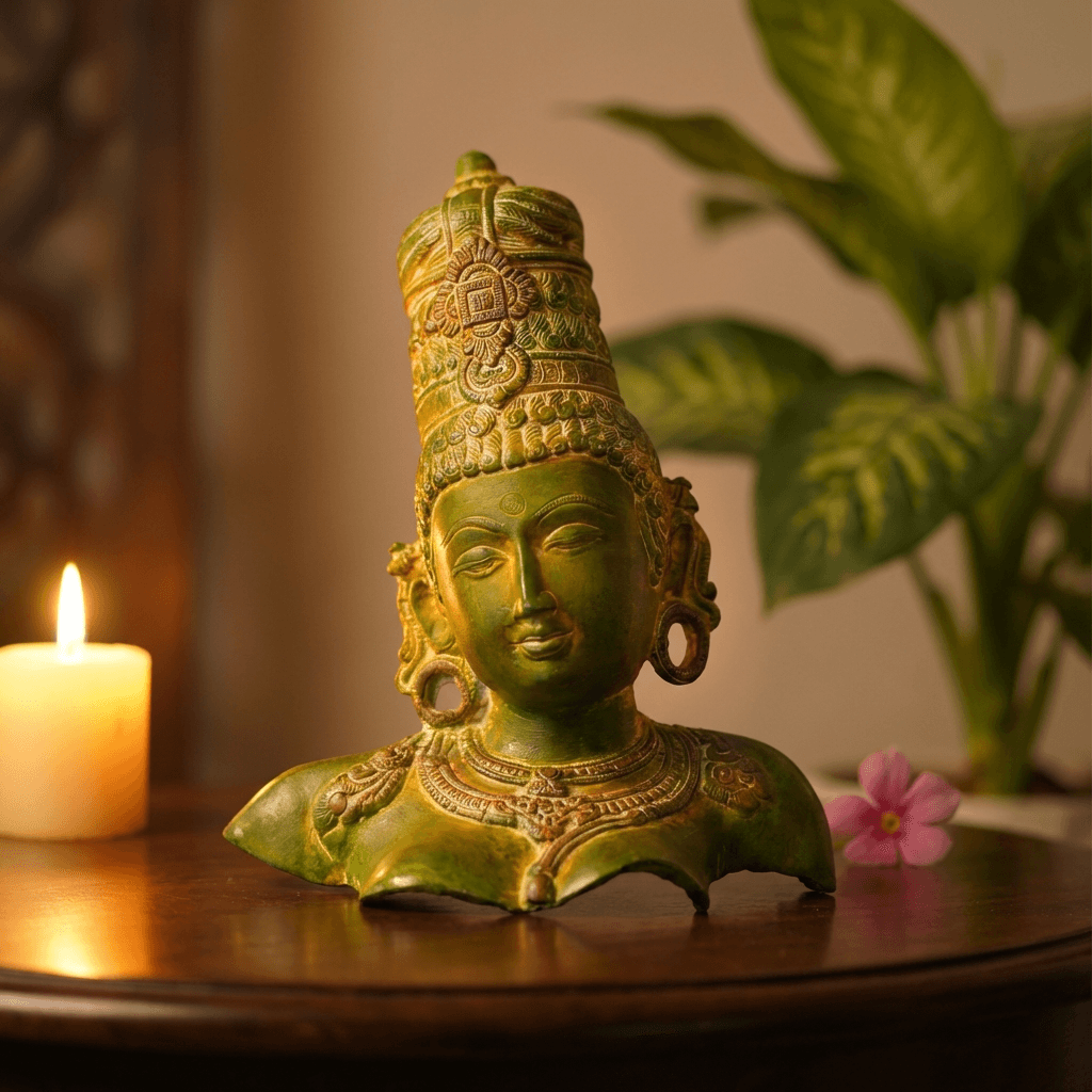 Shiva & Gouri Bust brings a sense of divine harmony and calm into your home with its serene expressions and antique finish. Perfect for living rooms, pooja spaces, or meditation corners, this spiritual decor piece adds timeless elegance and positive energy to any interior.