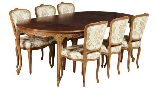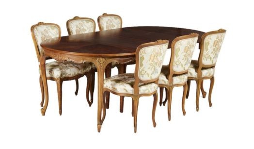 European elegance with floral upholstery and intricate carved details. A rich, vintage centrepiece for classic interiors.