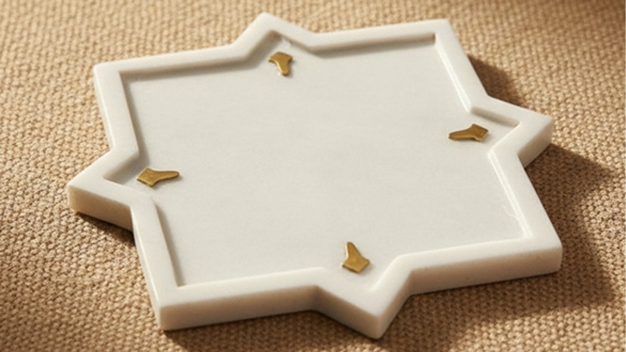 Marble White Platter is an elegant decorative platter crafted from premium white marble with subtle gold detailing. Perfect for modern and luxury home decor, it serves as a stylish accent for coffee tables, dining settings, consoles, and curated interior styling.