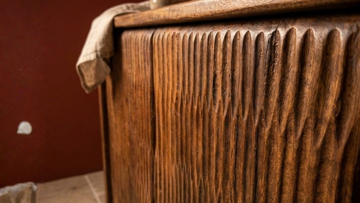 Wood Ridge Console Table is a handcrafted wooden console featuring rich natural textures and a warm rustic finish. Designed for functional elegance, it offers ample storage while enhancing living rooms, dining areas, and hallways with timeless style and premium home decor appeal.