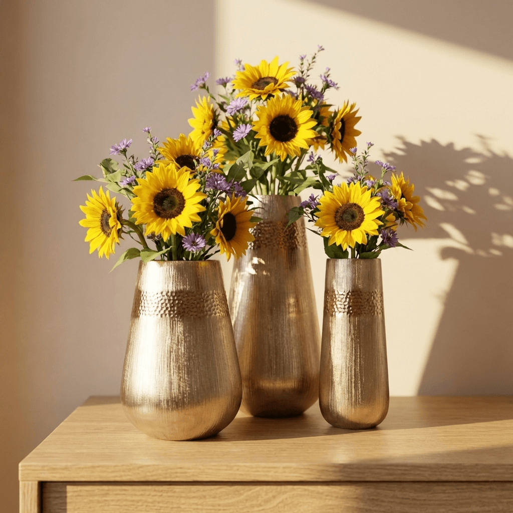 Gold Vases, Fresh Blooms